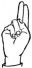 На ћирилици написано ИВА БРУЈИЋ састоји се из 9 слова [?]. Исписано ћириличном једноручном азбуком за глувонеме:
